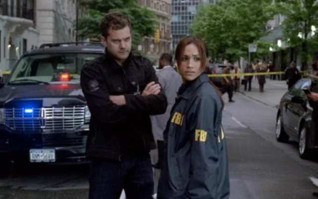 It was back to the action for Markle, playing the very inquisitive (and no-nonsense) FBI Agent Jessup in 2009 on the mid-bending Fox sci-fi series Fringe. Her attempts to control the crime scene and question series star Joshua Jackson are quickly ended as co-star Anna Torv flies through the windshield of a wrecked SUV that had just moments before been completely empty.