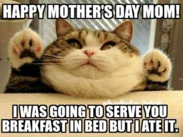 “Happy Mother’s Day, Mom! I was going to serve you breakfast in bed, but I ate it.”
