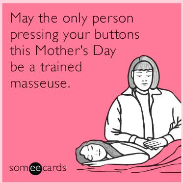 “May the only person pressing your buttons this Mother’s Day be a trained masseuse.”