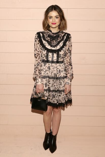 It has discreet models like this black leather bag that the actress and singer Lucy Hale looks like. Getty Images / Monica Schipper