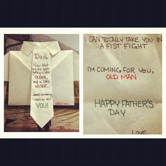 A fun way to let your dad know you are all grown up. Thank him for helping you become strong, and show him who the new boss around this house is.